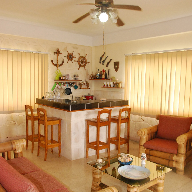 Independent one-bedroom apartment. It has a bathroom and kitchen. It was recently renovated. Antique furniture. This house is located on the 5th Avenue, in the Miramar residential area, and it is one block away from the cultural center «Dos Gardenias».
