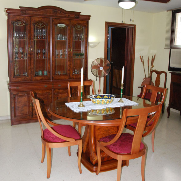 Apartment built in the 50s. Large terrace, spacious and well lit rooms, antique furniture. Safe. Each room has a private bathroom. Garage.