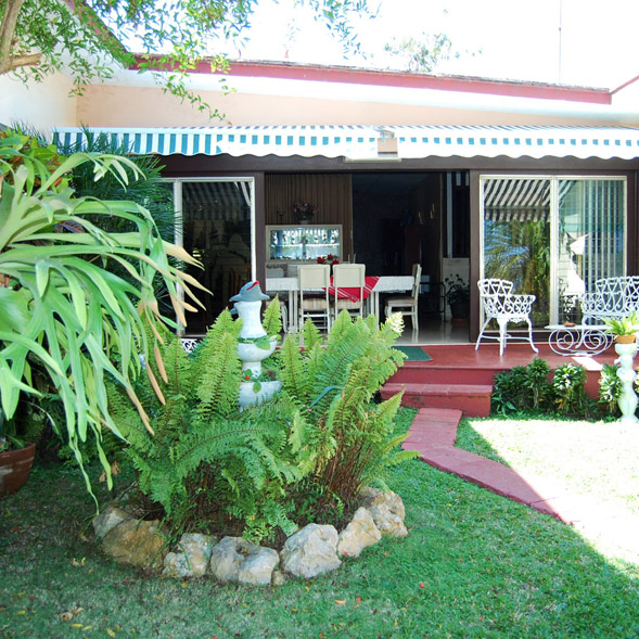 Classic Cuban 50's style villa. Residential district. Available for guests: dining room, 2 bedrooms, 3 bathrooms, air conditioning, domestic staff, swimming pool, garden with tropical plants and parking space.