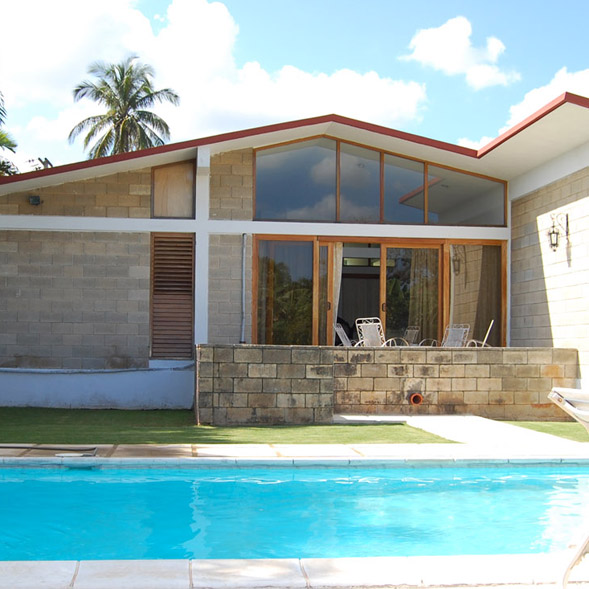 Most homes and luxury villas with swimming pool are located in Playa, a municipality of Havana. They were built in the fifties according to the architectural style that was popular in the United States back in those times. Renting houses and villas with swimming pool in Havana has become one of the most popular choices, since the clients can feel first hand the charm and comfort inherent to the life style of the former Havana bourgeoisie and they can feel like a sugar industry wealthy businessperson or the typical mid 20th century North American entrepreneur. Some of the villas were renovated and now present a modern minimalistic design.