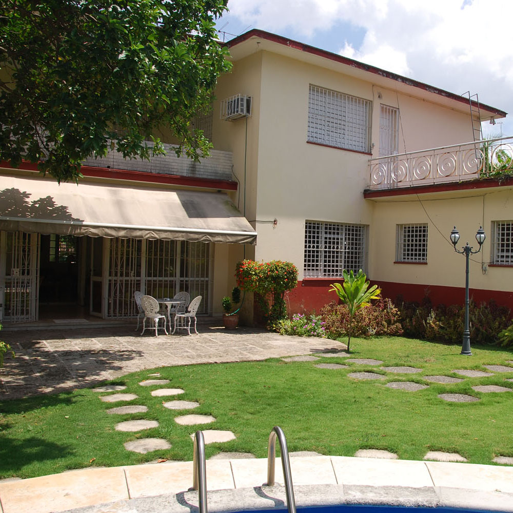 Small 50's Cuban style villa. Residential area. Available for guests: living room, 3 bedrooms, 2 bathrooms, air conditioning, domestic staff, swimming pool, parking space.